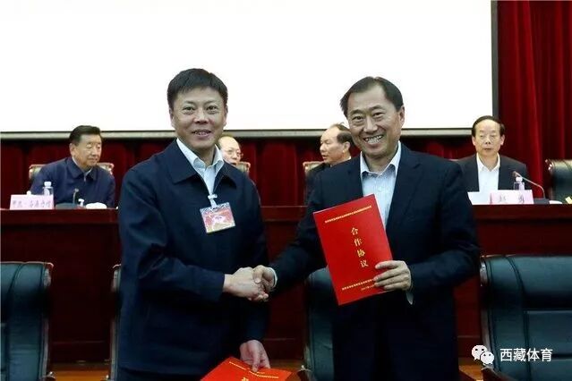 会议现场,西藏体育局与体育总局田径中心签订了《关于支持西藏田径运动发展合作协议》,西藏各地市与各对口援藏省市签订了《关于对口援助西藏 共同培养竞技体育后备人才合作协议》。